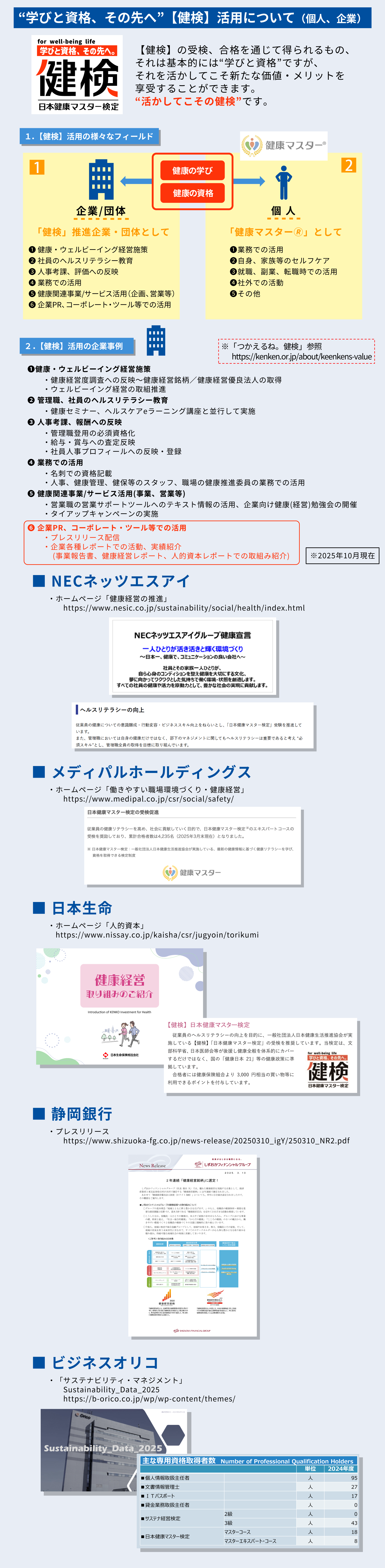 “学びと資格、その先へ”【健検】活用について(個人、企業)